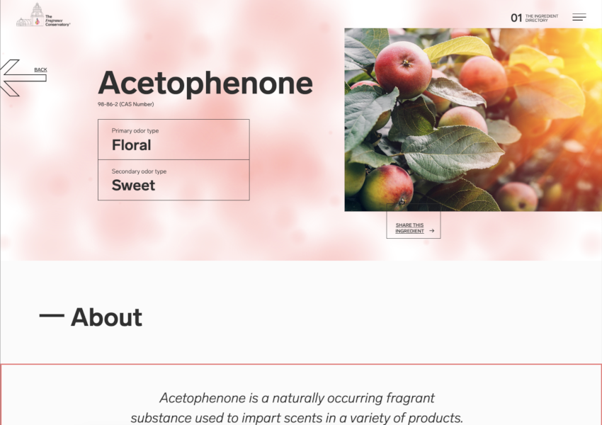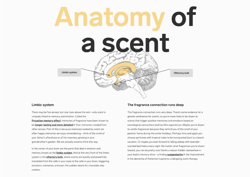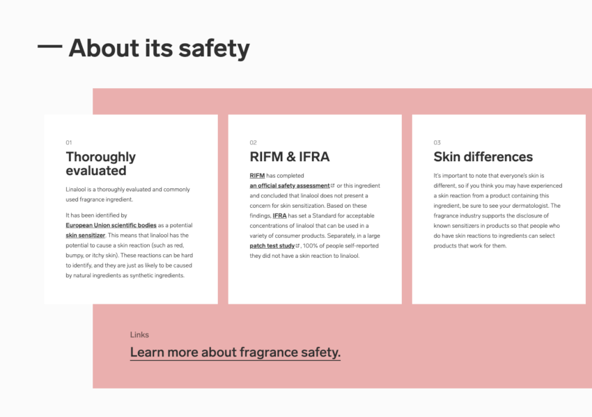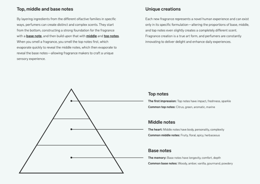 Wrote website copy that dived into the science of fragrances from how they’re created to industry safety standards. As part of this ongoing project, I helped write 200+ standardized fragrance ingredient descriptions.